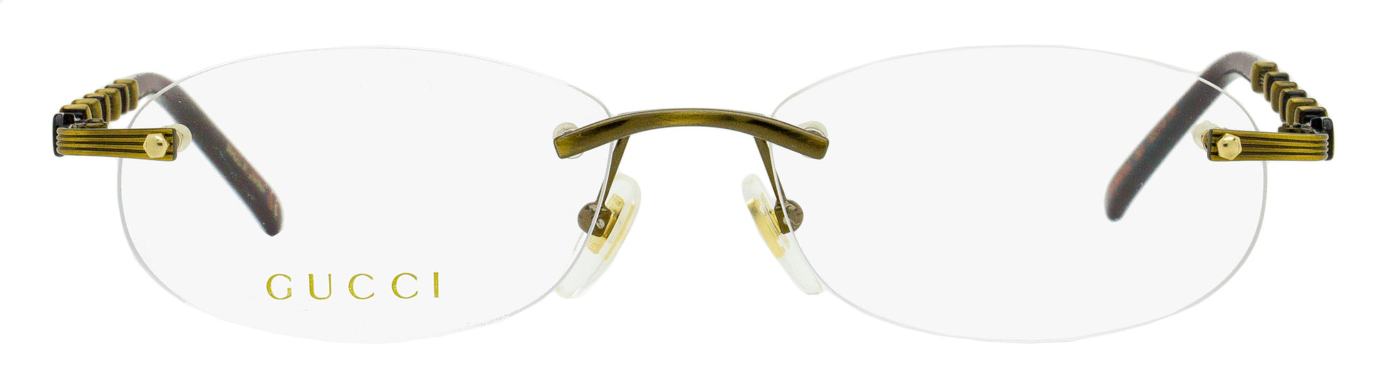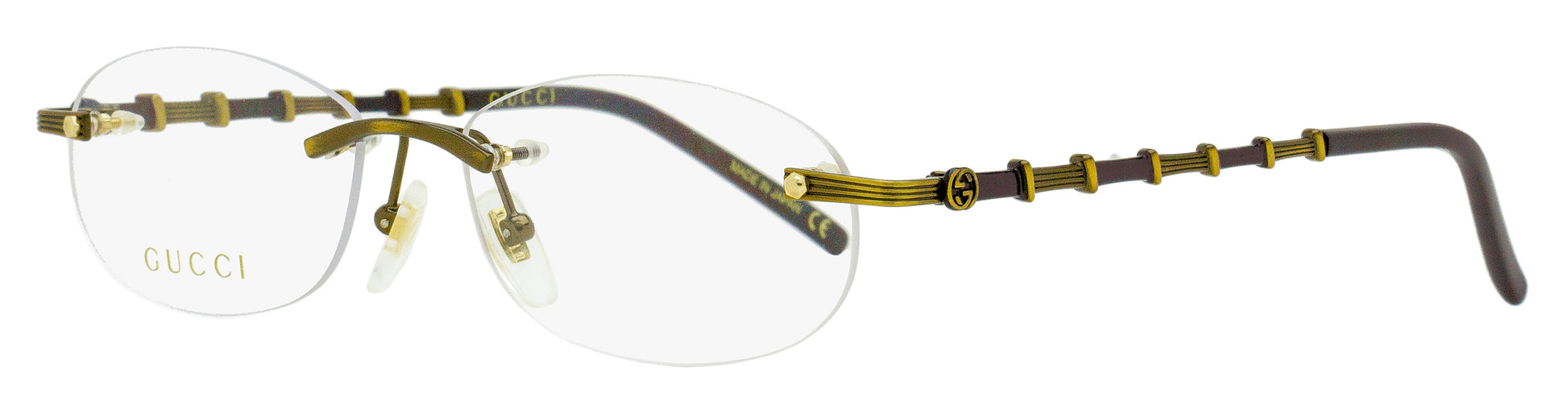Gucci Bamboo Rimless Eyeglasses GG0857OJ 002 Antique Gold/Brown 52mm