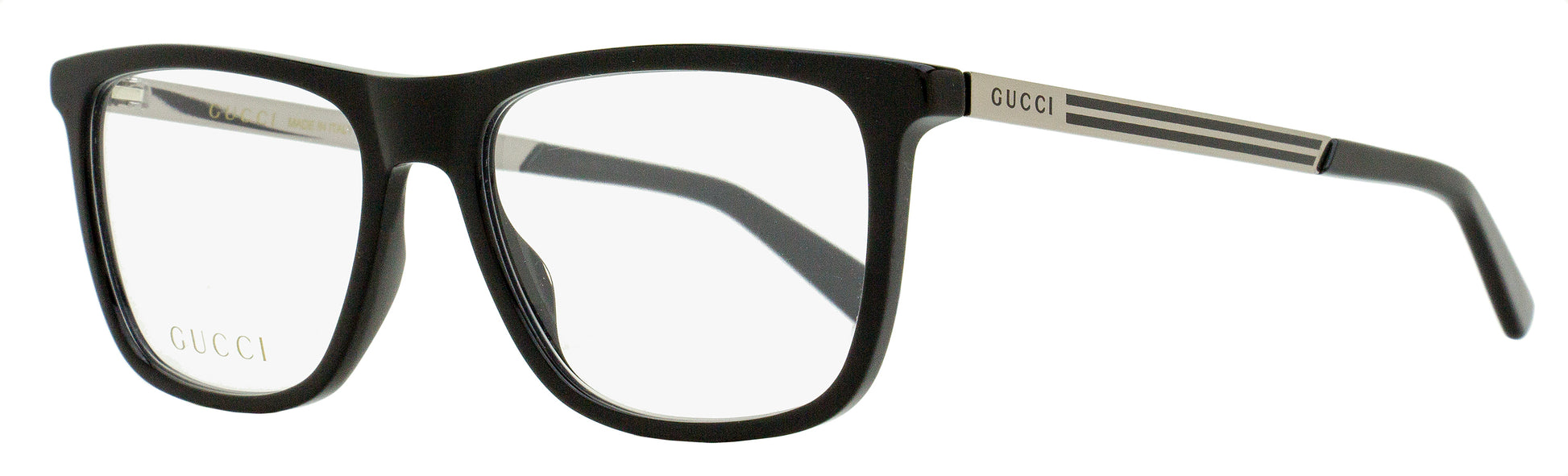 The Gucci GG0691 optical frames feature a clean rectangular profile suitable for men. The acetate frame is accented with metal temples adorned with Gucci lettering and signature stripes. Gucci eyewear blends luxury craftsmanship with bold, fashion-forward designs and signature details like the iconic GG logo. Gucci sunglasses and optical frames blend vintage inspiration with modern elegance. Please note these eyeglasses are provided with Demo Lenses in order to demonstrate the final appearance of your frames. Please visit your local Optometrist or Optician to replace with optical quality lenses.