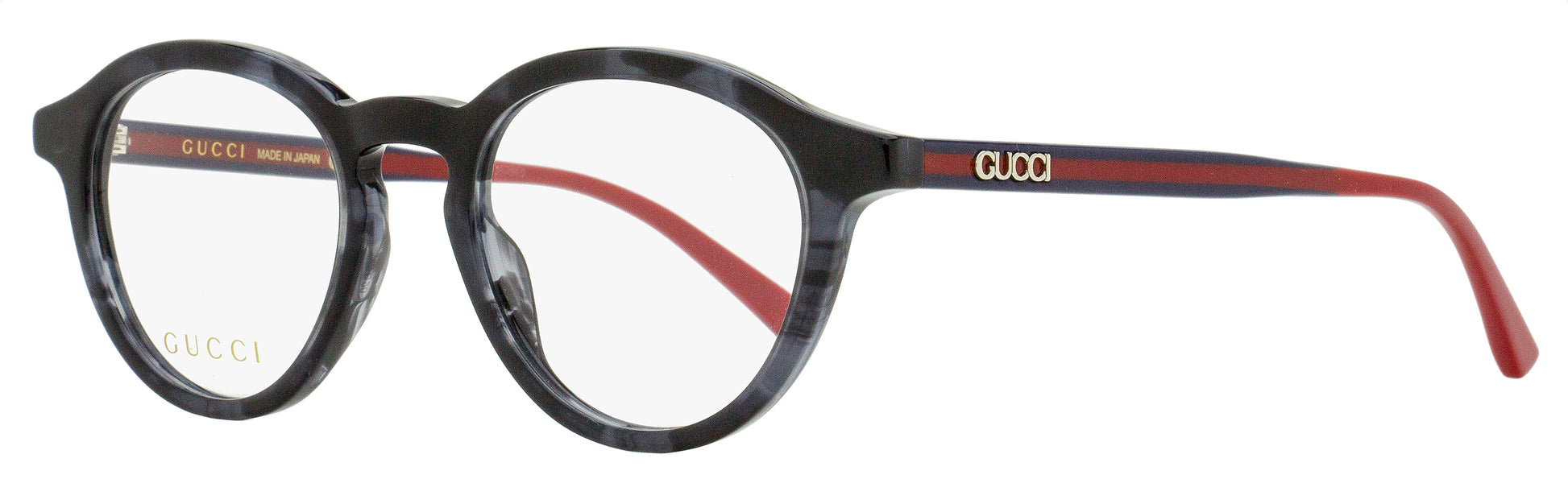 The Gucci 1871 optical frames feature a Pantos shape with keyhole bridge design for men. The temples feature the new Gucci block letter logo and either the green-red-green and blue-red-blue web colors. Gucci eyewear blends luxury craftsmanship with bold, fashion-forward designs and signature details like the iconic GG logo. Gucci sunglasses and optical frames blend vintage inspiration with modern elegance. Please note these eyeglasses are provided with demo Lenses in order to demonstrate the final appearance of your frames. Please visit your local Optometrist or Optician to replace with optical quality lenses.