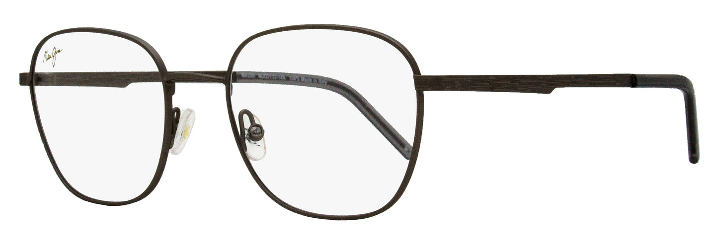 The Maui Jim 2133 optical frames feature an oval shape with adjustable nose pads suitable for all genders. The metal temples are finished with a wood grain texture and acetate tips. Maui Jim eyewear offers a collection of premium sunglasses and optical frames, featuring advanced materials and technology. Maui Jim designs combine style with functionality; providing durable, high-quality frames suited for both active and everyday wear. Please note these eyeglasses are provided with Demo Lenses in order to demonstrate the final appearance of your frames. Please visit your local Optometrist or Optician to replace with optical quality lenses.