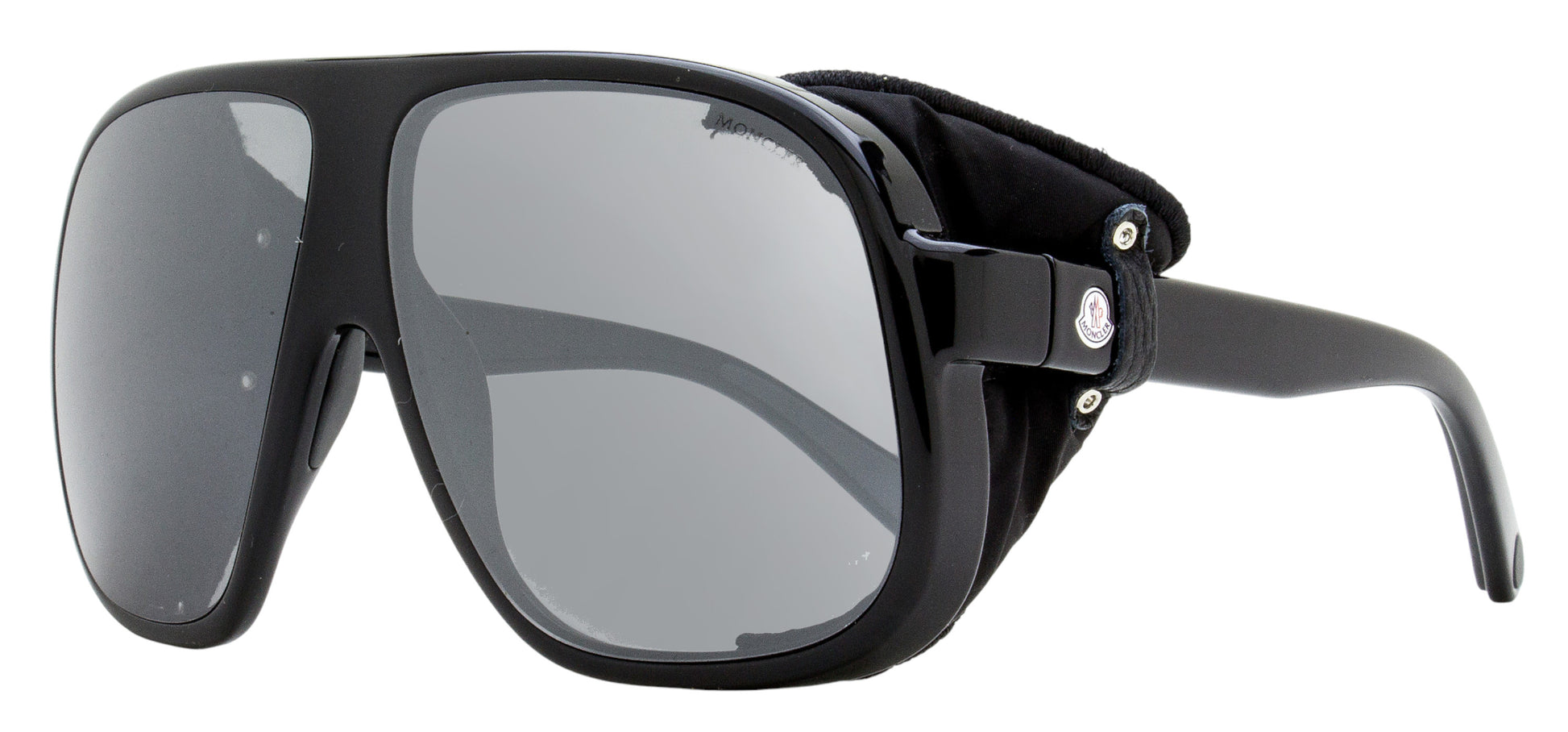 The Moncler 206 Diffractor sunglasses feature an oversize square profile Pilot shape designed for men and women. The injected plastic frame features removable side blinders made of padded fabric. The Moncler marquee is displayed on both temples. Moncler Eyewear blends luxury craftsmanship with high-performance design, drawing inspiration from the brand’s alpine heritage. The collection features bold frames and premium materials that combine fashion with performance. Providing 100% UV protection from the sun's harmful rays these sunglasses are functional in addition to being fashionable.