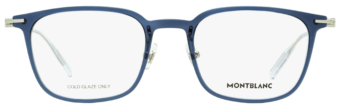 Montblanc Rectangular Eyeglasses MB0100O 004 Transparent Blue/Silver 52mm 0100