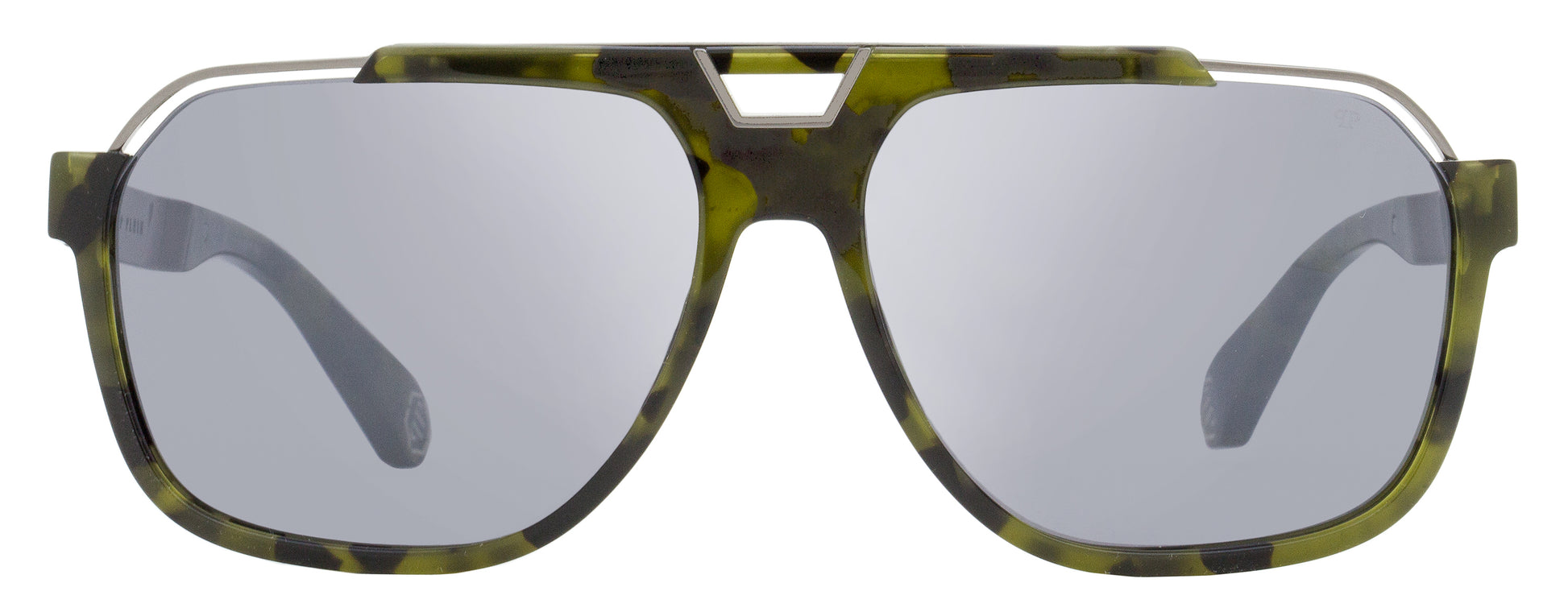 Philipp Plein Flash Navigator Sunglasses SPP046M 92IX Green Havana 61mm