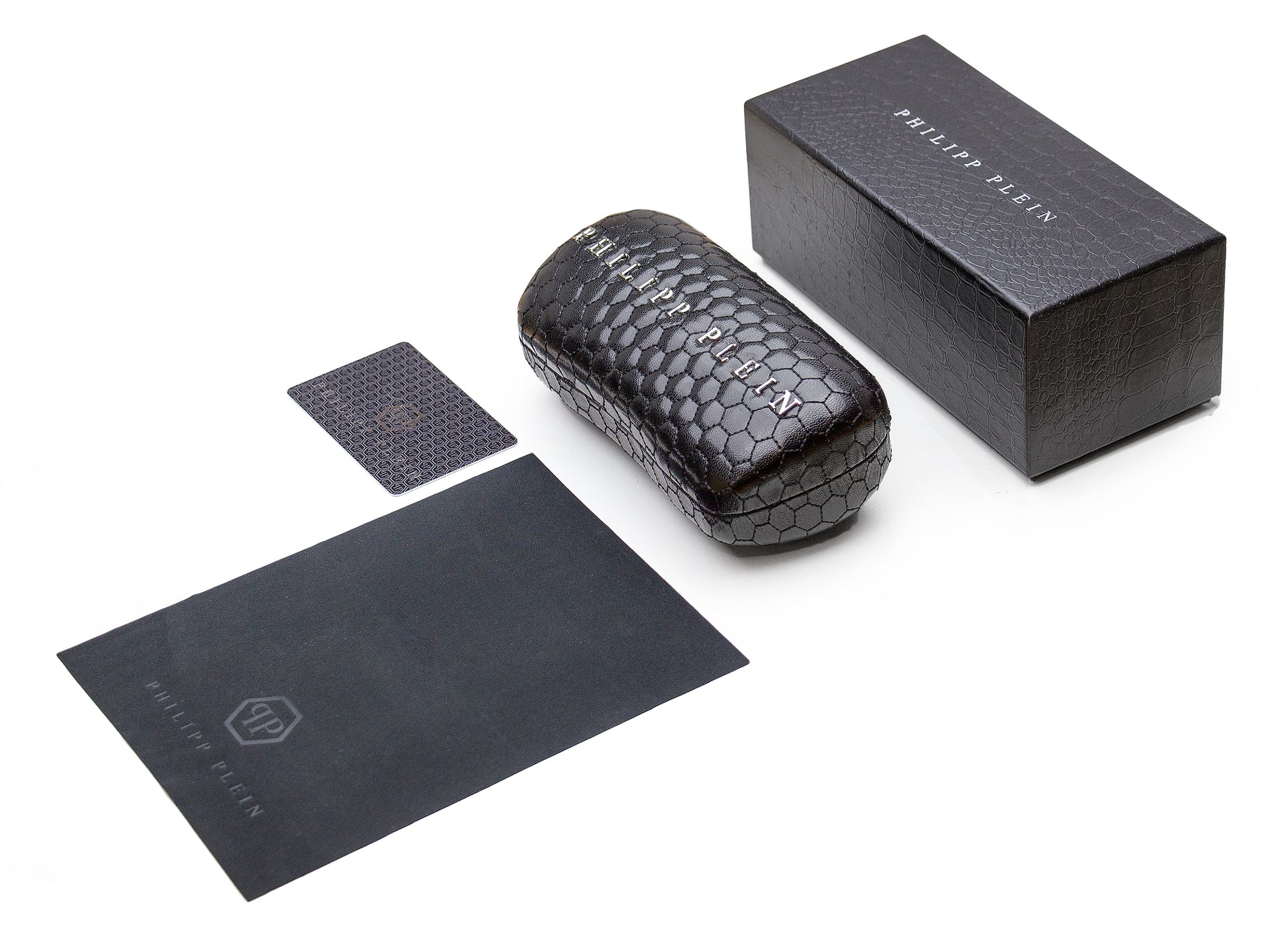 The Philipp Plein SPP046 sunglasses feature a large Navigator shape with a cutout bridge design for men. The acetate frame is accented with large metal logo plaques on both temples. Philipp Plein eyewear embodies the brand’s bold and extravagant aesthetic, featuring striking details like crystals, studs, and the iconic skull motif. The collection blends luxury craftsmanship and exudes confidence and individuality. Providing 100% UV protection from the sun's harmful rays these sunglasses are functional in addition to being fashionable.