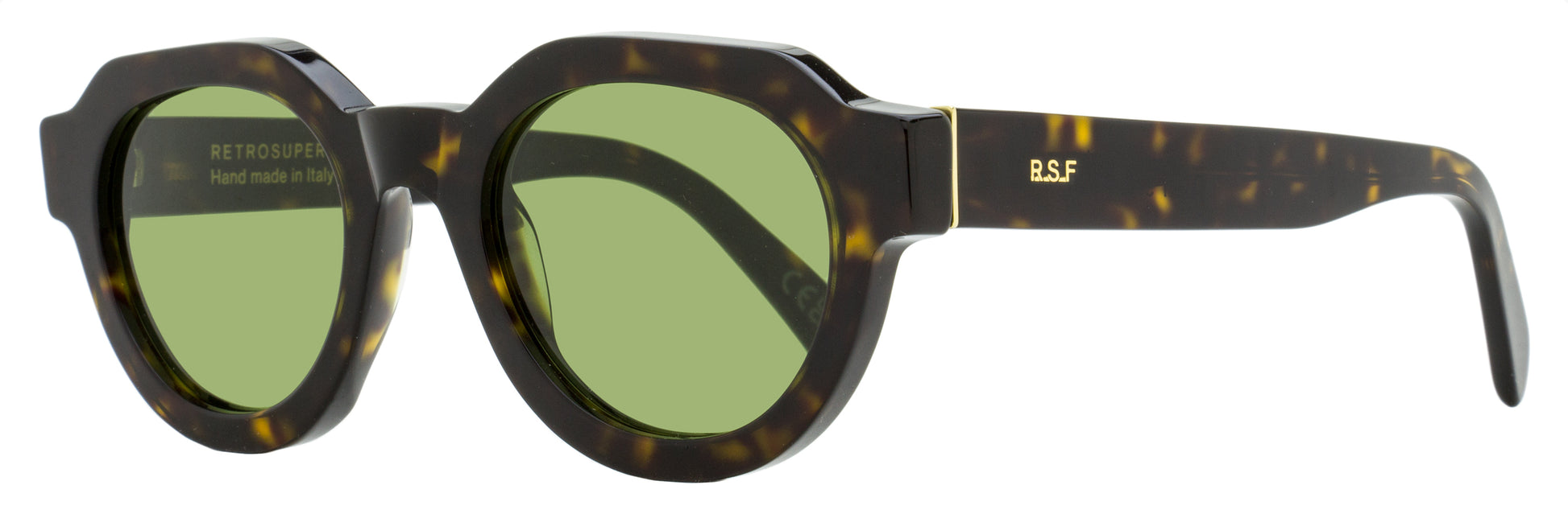 The Retrosuperfuture Vostro Sunglasses feature a rounded geometric shape with oval lenses suitable for all genders. These acetate frames are hand made in Italy and are accented with monogram branding on both temples. Founded in Italy in 2007, Retrosuperfuture has become famous for its eclectic collection of handmade acetate sunglasses. The collection includes classic styles with clean silhouettes and cutting edge shapes inspired by the energetic design aesthetic of the brand. Providing 100% UV protection from the sun's harmful rays these sunglasses are functional in addition to being fashionable.