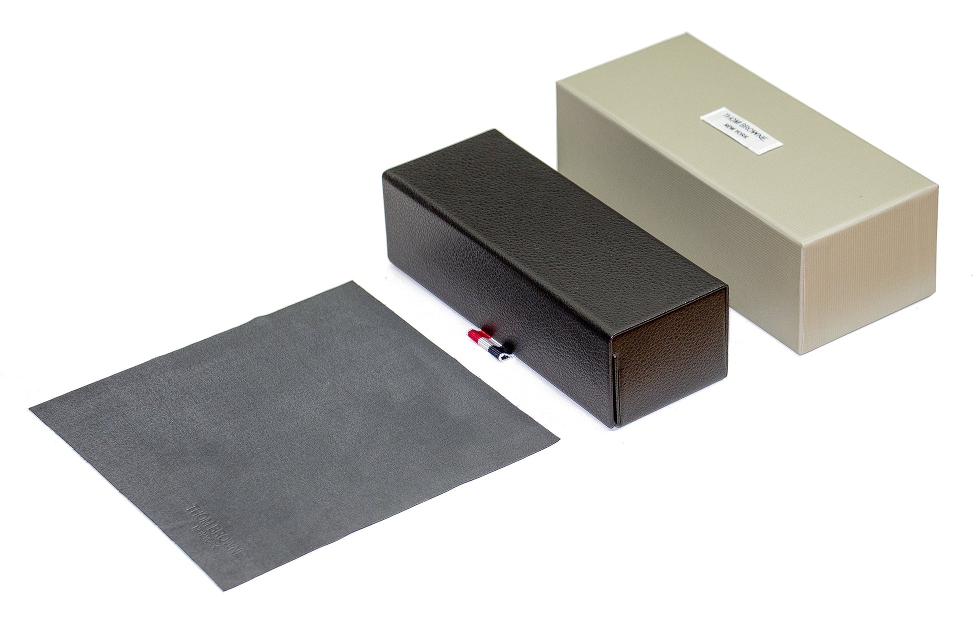 The Thom Browne 109 Sunglasses feature a small oval lens shape with arching double bridge design suitable for all genders. The Titanium frame is enhanced with metal nose pads and the brand's signature tricolor detailing at the temple tip. Thom Browne eyewear blends avant-garde design with classic American tailoring, featuring bold shapes, signature tricolor detailing, and meticulous craftsmanship. Known for its architectural silhouettes and luxurious materials, the collection redefines modern sophistication in eyewear. Providing 100% UV protection from the sun's harmful rays these sunglasses are functional in addition to being fashionable.